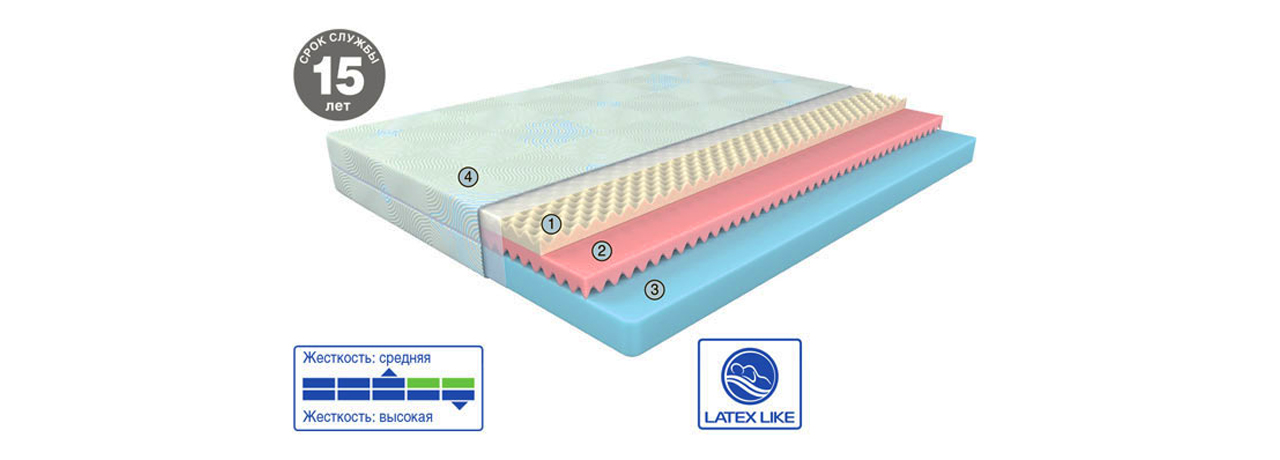 Высокоплотная пена в основе матраса обеспечивает правильное положение позвоночника в любой позе сна.